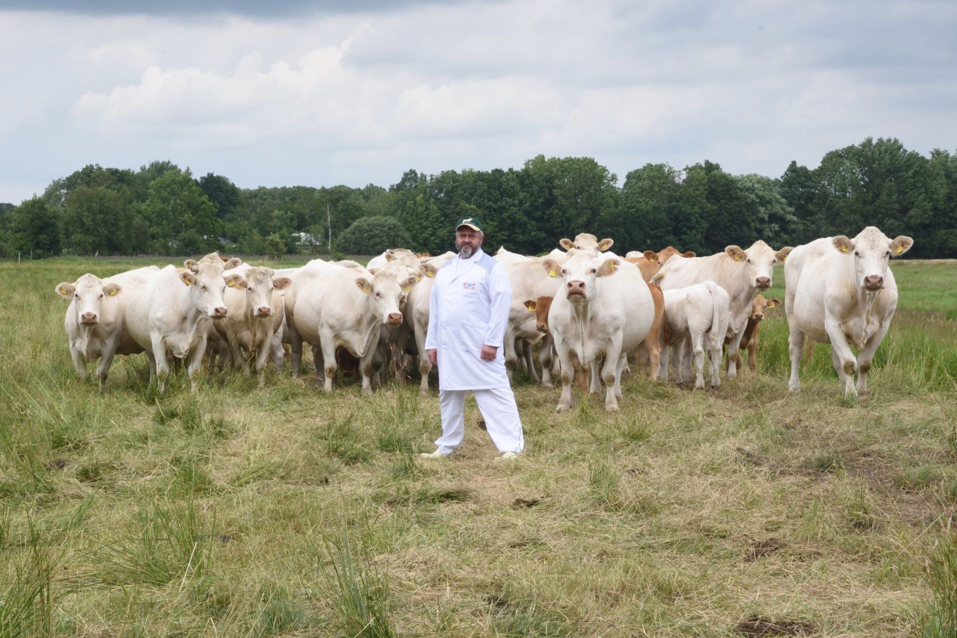 Wir züchten auf unserem Hof französische Charolais-Rinder, deutsche Landschweine und Schafe vom Weserdeich. Besonders stolz sind wir auf unsere Charolais.